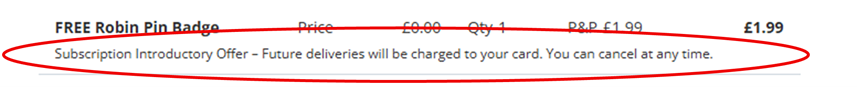 We'll always tell you the item you are ordering is an introduction to a collection on your order form or the product's webpage. If you are ordering online, we will also let you know you are subscribing through the checkout process and again in your order confirmation email. There are some examples below.