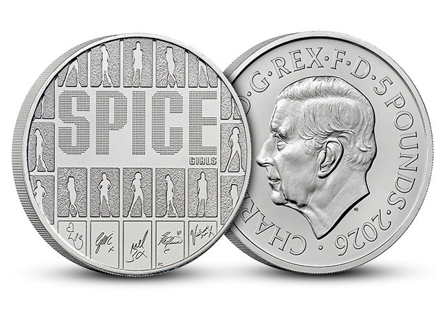 Login Your basket is empty 0 ARCHIVE DAY - 24th March 2026. EXCLUSIVE EARLY ACCESS - SIGN UP HERE Brand Toggle navigation Menu Help Blog The Queen's CentenaryMost PopularRecent Releases2026 UK Annual SetsTitanic 50p Coin RangeBritish Cathedrals 50p CoinsThunderbirds 50p CoinsThe UK 2026 100th Birthday of Winnie the Pooh 50p Coin RangePortraits of a Queen - The Final Effigy 2026 UK Coin RangeThe QueenUK Memorial CoinsThe Last Coins of Her MajestyPrevious IssuesIn MemoriamThe Decades of Queen Elizabeth II Historic Coin RangeThe Queen's CentenaryPortraits of a Queen - The Final Effigy 2026 UK Coin RangeKing Charles IIIBuckingham PalaceUK Coins: New King Charles III PortraitCoronation & AccessionPrevious IssuesPopular 50psCoinsBritish Isles20252024202320222021Previous yearsSovereignsHistoric CoinsThe Royal Mint BU Packs10p Coins50p CoinsOne Pound CoinsTwo Pound CoinsFive Pound CoinsBy CountryUKCanadaUSAAustraliaFranceJerseyGuernseyIsle of ManFalkland IslandsBy ThemeWWI, WWII & MilitaryRoyaltyLandmarksMusic, Film & TVLiteratureBritish InterestInfluential PeopleSportsWildlifeDinosaursTrains, Planes & AutomobilesCharity PartnershipsHistoric CoinsRoyaltyInternational Historic CoinsFramed CoinsMilitaryPre-decimal CoinsHistoric SovereignsThe Decades of Queen Elizabeth II Historic Coin RangeDateStamp (TM)What's a DateStamp™?Brilliant Unicirculated DateStamp™Silver DateStamp™Gold DateStamp™Historic DateStamp™AccessoriesExtraordinary CoinsChange CheckerChange Checker Shop HomeChange Checker Subscription ServiceCERTIFIED BU CoinsFifty PenceOne PoundTwo PoundsFive PoundsCirculating CoinsOne Pound CoinsTwo Pound CoinsFifty Pence CoinsFive Pound CoinsThemeRoyaltyWWI, WWII & MilitaryInfluential PeopleSportsDinosaursLiteratureMusic, Film & TVHistoric UK Coins and BanknotesBanknotesPre-decimal CoinsOut of Circulation CoinsAlbums and AccessoriesAlbumsAccessoriesCollector PacksChange Checker+Wallets, Pages and ID CardsInternational CoinsChange Checker ClassicsDisplay Cards & GiftsMedalsBy ThemeRoyaltyMusic, Film & TVWWI, WWII & MilitaryRoyal British LegionHallmark Proof™What is a Hallmark Proof™?StampsBy ThemeRoyaltyWWI, WWII & MilitaryFilm & TVLiteraryGames and ComicsMusicCommemorative CoversStamps by MonarchCharles IIIElizabeth IIGeorge VIGeorge VVictoriaHistoric StampsAccessoriesBlogHelp The Spice Girls 2026 UK BU £5 Coin Pack The Spice Girls 2026 UK BU £5 Coin Pack Price £18.50 (+ £2.99 p&p) Multi buy postage saving Some items qualify for reduced postage and packing when they are ordered together. You will see your saving shown as “Multi Buy Postage Saving” in your basket. Don’t forget to look out for the MULTI-BUY p&p logo. Add to Basket We expect all orders will be despatched within the next 2 - 3 working days. Order Ref 185/113A/0 Limited to 9 item(s) per household The Spice Girls 2026 UK BU £5 Coin Pack Spice up your collection… Few acts have shaped popular culture quite like the Spice Girls. Emerging in 1996, their string of No.1 singles and unmistakable identity left a lasting mark on British music and around the world. To mark 30 years since their debut 'Wannabe', their extraordinary influence has been celebrated with an official UK £5 coin. Features the instantly recognisable silhouettes of all five Spice Girls, alongside their engraved signatures. Created in official partnership with the Spice Girls. Carefully struck to a Brilliant Uncirculated specification - a superior finish free from the marks and scratches found on circulating coins. Presented in official Royal Mint packaging. A worthy addition to the highly popular Music Legends £5 series. Honour pop history with this striking tribute to the ultimate girl group! Or, should you wish to secure this coin in limited edition Silver Proof, click here >> The Spice Girls 2026 UK BU £5 Coin Pack Price £18.50 (+ £2.99 p&p) Multi buy postage saving Some items qualify for reduced postage and packing when they are ordered together. You will see your saving shown as “Multi Buy Postage Saving” in your basket. Don’t forget to look out for the MULTI-BUY p&p logo. Add to Basket We expect all orders will be despatched within the next 2 - 3 working days. Order Ref 185/113A/0 Limited to 9 item(s) per household Price £18.50 (+ £2.99 p&p) Multi buy postage saving Some items qualify for reduced postage and packing when they are ordered together. You will see your saving shown as “Multi Buy Postage Saving” in your basket. Don’t forget to look out for the MULTI-BUY p&p logo. Specifications Country of Issue: UK Year of Issue: 2026 Coin Diameter: 38.61mm Coin Weight: 28.28g Obverse: Martin Jennings Reverse: Ffion Gwillim Metal: Cupro-nickel Finish: Brilliant Uncirculated Share: Numismatic pieces should be owned primarily for collector interest.The Westminster Collection does not offer them as an investment and makes no guarantees in terms of future value. We'll contact you directly with more details, please fill out the form below: The boxes marked with * must be completed Please note - unless you've opted in elsewhere we will not use your details for any ongoing marketing. Name: Email: Telephone No: Best Time To Call: Morning Afternoon Evening Cancel Submit Enquiry Thankyou, your enquiry has been submitted and we will be in touch within the next 2 working days. Close Sorry, there was a problem. Please try again later. Close