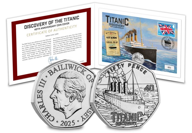 - Includes the BRAND NEW 2025 Guernsey Titanic 50p Coin - struck to a Brilliant Uncirculated finish