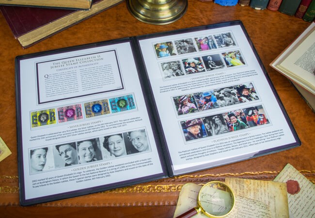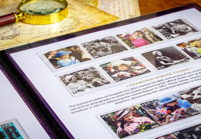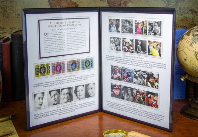 Combining the official UK Royal Mail stamps from Queen Elizabeth II’s Silver, Golden, Diamond and Platinum Jubilee, your collection preserves the most poignant milestones of our longest reigning monarch.