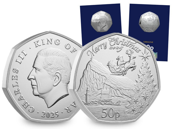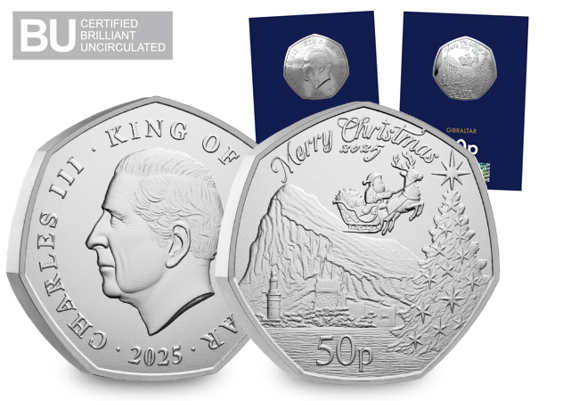 Or SAVE OVER 20% and secure the 2025 Gibraltar Christmas BU 50p and £2 Coin Pair for just £17.99 (+p&p)>>