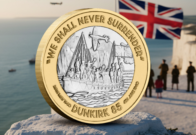 Now, 85 years on, you can commemorate that turning point in British history with the official Dunkirk £2 Coin Collection — a powerful four-coin tribute to the efforts on land, sea, in the air, and the human spirit that defined the rescue.