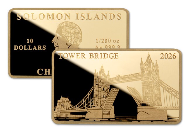 Login Your basket is empty 0 ARCHIVE DAY - 24th March 2026. EXCLUSIVE EARLY ACCESS - SIGN UP HERE Brand Toggle navigation Menu Help Blog The Queen's CentenaryMost PopularRecent Releases2026 UK Annual SetsTitanic 50p Coin RangeBritish Cathedrals 50p CoinsThunderbirds 50p CoinsThe UK 2026 100th Birthday of Winnie the Pooh 50p Coin RangePortraits of a Queen - The Final Effigy 2026 UK Coin RangeThe QueenUK Memorial CoinsThe Last Coins of Her MajestyPrevious IssuesIn MemoriamThe Decades of Queen Elizabeth II Historic Coin RangeThe Queen's CentenaryPortraits of a Queen - The Final Effigy 2026 UK Coin RangeKing Charles IIIBuckingham PalaceUK Coins: New King Charles III PortraitCoronation & AccessionPrevious IssuesPopular 50psCoinsBritish Isles20252024202320222021Previous yearsSovereignsHistoric CoinsThe Royal Mint BU Packs10p Coins50p CoinsOne Pound CoinsTwo Pound CoinsFive Pound CoinsBy CountryUKCanadaUSAAustraliaFranceJerseyGuernseyIsle of ManFalkland IslandsBy ThemeWWI, WWII & MilitaryRoyaltyLandmarksMusic, Film & TVLiteratureBritish InterestInfluential PeopleSportsWildlifeDinosaursTrains, Planes & AutomobilesCharity PartnershipsHistoric CoinsRoyaltyInternational Historic CoinsFramed CoinsMilitaryPre-decimal CoinsHistoric SovereignsThe Decades of Queen Elizabeth II Historic Coin RangeDateStamp (TM)What's a DateStamp™?Brilliant Unicirculated DateStamp™Silver DateStamp™Gold DateStamp™Historic DateStamp™AccessoriesExtraordinary CoinsChange CheckerChange Checker Shop HomeChange Checker Subscription ServiceCERTIFIED BU CoinsFifty PenceOne PoundTwo PoundsFive PoundsCirculating CoinsOne Pound CoinsTwo Pound CoinsFifty Pence CoinsFive Pound CoinsThemeRoyaltyWWI, WWII & MilitaryInfluential PeopleSportsDinosaursLiteratureMusic, Film & TVHistoric UK Coins and BanknotesBanknotesPre-decimal CoinsOut of Circulation CoinsAlbums and AccessoriesAlbumsAccessoriesCollector PacksChange Checker+Wallets, Pages and ID CardsInternational CoinsChange Checker ClassicsDisplay Cards & GiftsMedalsBy ThemeRoyaltyMusic, Film & TVWWI, WWII & MilitaryRoyal British LegionHallmark Proof™What is a Hallmark Proof™?StampsBy ThemeRoyaltyWWI, WWII & MilitaryFilm & TVLiteraryGames and ComicsMusicCommemorative CoversStamps by MonarchCharles IIIElizabeth IIGeorge VIGeorge VVictoriaHistoric StampsAccessoriesBlogHelp The Tower Bridge Coin-Bar - Struck from 24 Carat Gold The London Tower Bridge Landmark Gold Coin Price £99.99 (+ £3.99 p&p) Multi buy postage saving Some items qualify for reduced postage and packing when they are ordered together. You will see your saving shown as “Multi Buy Postage Saving” in your basket. Don’t forget to look out for the MULTI-BUY p&p logo. Your Subscription Guarantee We'll always tell you the item you are ordering is an introduction to a collection. We'll always tell you how much each delivery in the collection will cost. We'll always tell you how often we will send you a delivery. You are always covered by your full 30-Day Money Back Guarantee and FREE returns. You can pause or cancel your collection at any time. INTRODUCTORY OFFERBy ordering the London Tower Bridge Gold Coin, you gainpriority access to the Landmarks of the World 24-Carat GoldCoin Set. Each month you will receive the next coin in thecollection for just £99.99 (+p&p). You will also receive aPresentation Album for Free to house your collection. Youcan cancel your subscription at any time. Add to Basket We expect all orders will be despatched within the next 2 - 3 working days. Order Ref 185/494H/0 Limited to 3 item(s) per household The Tower Bridge Coin-Bar - Struck from 24 Carat Gold A legal-tender coin shaped like a bullion bar – struck in 24-carat gold, finished to Proof standard, and bearing the effigy of His Majesty King Charles III. Why This Piece Stands Out Crafted as a unique fusion of coin and bullion, the reverse features a detailed engraving of Tower Bridge - a timeless symbol of Britain. The obverse bears the official denomination and King Charles III portrait, confirming its status as legal tender. Struck to a premium Proof finish, it offers the rare combination of pure gold, distinguished design, and strict exclusivity. Limited First Release Limited to just 10,000 pieces worldwide, this is the first release in the Gold Landmarks of the World Collection and is available for just £99.99. The London Tower Bridge Landmark Gold Coin Price £99.99 (+ £3.99 p&p) Multi buy postage saving Some items qualify for reduced postage and packing when they are ordered together. You will see your saving shown as “Multi Buy Postage Saving” in your basket. Don’t forget to look out for the MULTI-BUY p&p logo. Your Subscription Guarantee We'll always tell you the item you are ordering is an introduction to a collection. We'll always tell you how much each delivery in the collection will cost. We'll always tell you how often we will send you a delivery. You are always covered by your full 30-Day Money Back Guarantee and FREE returns. You can pause or cancel your collection at any time. INTRODUCTORY OFFERBy ordering the London Tower Bridge Gold Coin, you gainpriority access to the Landmarks of the World 24-Carat GoldCoin Set. Each month you will receive the next coin in thecollection for just £99.99 (+p&p). You will also receive aPresentation Album for Free to house your collection. Youcan cancel your subscription at any time. Add to Basket We expect all orders will be despatched within the next 2 - 3 working days. Order Ref 185/494H/0 Limited to 3 item(s) per household Price £99.99 (+ £3.99 p&p) Multi buy postage saving Some items qualify for reduced postage and packing when they are ordered together. You will see your saving shown as “Multi Buy Postage Saving” in your basket. Don’t forget to look out for the MULTI-BUY p&p logo. Your Subscription Guarantee We'll always tell you the item you are ordering is an introduction to a collection. We'll always tell you how much each delivery in the collection will