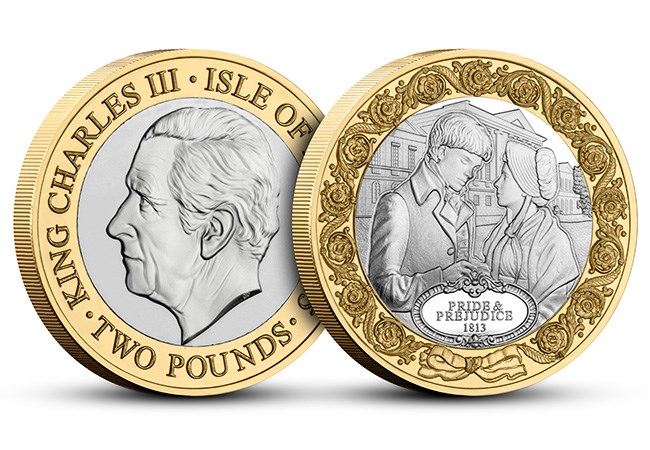 This special release brings together all three brand-new 2025 £2 coins issued for the occasion: an elegant Jane Austen Portrait £2, the romantic Pride and Prejudice £2, and a charming Sense and Sensibility £2 alongside an original pre-decimal Jane Austen Stamp.