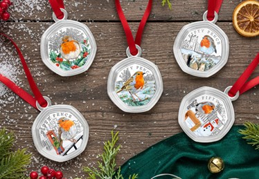 Each bauble features a colour 2025 50p, depicting Britain’s favourite winter bird – the robin – set against a beautifully illustrated festive scene created by artist Trevor Mitchell.