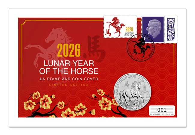 To celebrate the 2026 Year of the Horse, this limited-edition Coin and Stamp Cover brings together official Royal Mint and Royal Mail elements in one beautifully presented collectible.
