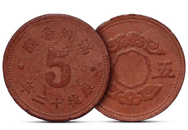 Minted behind enemy lines in Manchukuo, this coin is a genuine Second World War relic.