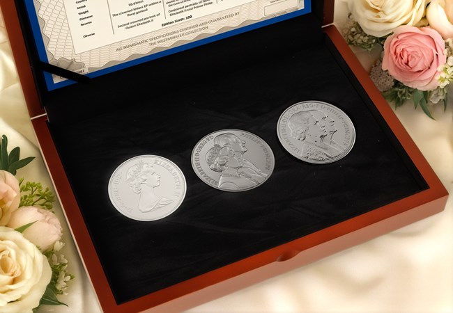 Login Your basket is empty 0 ARCHIVE DAY - 24th March 2026. EXCLUSIVE EARLY ACCESS - SIGN UP HERE Brand Toggle navigation Menu Help Blog The Queen's CentenaryMost PopularRecent Releases2026 UK Annual SetsTitanic 50p Coin RangeBritish Cathedrals 50p CoinsThunderbirds 50p CoinsThe UK 2026 100th Birthday of Winnie the Pooh 50p Coin RangePortraits of a Queen - The Final Effigy 2026 UK Coin RangeThe QueenUK Memorial CoinsThe Last Coins of Her MajestyPrevious IssuesIn MemoriamThe Decades of Queen Elizabeth II Historic Coin RangeThe Queen's CentenaryPortraits of a Queen - The Final Effigy 2026 UK Coin RangeKing Charles IIIBuckingham PalaceUK Coins: New King Charles III PortraitCoronation & AccessionPrevious IssuesPopular 50psCoinsBritish Isles20252024202320222021Previous yearsSovereignsHistoric CoinsThe Royal Mint BU Packs10p Coins50p CoinsOne Pound CoinsTwo Pound CoinsFive Pound CoinsBy CountryUKCanadaUSAAustraliaFranceJerseyGuernseyIsle of ManFalkland IslandsBy ThemeWWI, WWII & MilitaryRoyaltyLandmarksMusic, Film & TVLiteratureBritish InterestInfluential PeopleSportsWildlifeDinosaursTrains, Planes & AutomobilesCharity PartnershipsHistoric CoinsRoyaltyInternational Historic CoinsFramed CoinsMilitaryPre-decimal CoinsHistoric SovereignsThe Decades of Queen Elizabeth II Historic Coin RangeDateStamp (TM)What's a DateStamp™?Brilliant Unicirculated DateStamp™Silver DateStamp™Gold DateStamp™Historic DateStamp™AccessoriesExtraordinary CoinsChange CheckerChange Checker Shop HomeChange Checker Subscription ServiceCERTIFIED BU CoinsFifty PenceOne PoundTwo PoundsFive PoundsCirculating CoinsOne Pound CoinsTwo Pound CoinsFifty Pence CoinsFive Pound CoinsThemeRoyaltyWWI, WWII & MilitaryInfluential PeopleSportsDinosaursLiteratureMusic, Film & TVHistoric UK Coins and BanknotesBanknotesPre-decimal CoinsOut of Circulation CoinsAlbums and AccessoriesAlbumsAccessoriesCollector PacksChange Checker+Wallets, Pages and ID CardsInternational CoinsChange Checker ClassicsDisplay Cards & GiftsMedalsBy ThemeRoyaltyMusic, Film & TVWWI, WWII & MilitaryRoyal British LegionHallmark Proof™What is a Hallmark Proof™?StampsBy ThemeRoyaltyWWI, WWII & MilitaryFilm & TVLiteraryGames and ComicsMusicCommemorative CoversStamps by MonarchCharles IIIElizabeth IIGeorge VIGeorge VVictoriaHistoric StampsAccessoriesBlogHelp QEII & Prince Philip Wedding Anniversary Collection The Queen Elizabeth and Prince Philip Marriage Anniversary Collection Price £150.00 (+ £3.99 p&p) Payable with an initial payment of £30.00 (+p&p) followed by a further 4 monthly instalments of £30.00. Subject to status and approval, we may perform a credit check. Easy Pay Information Where the Easy Pay logo is displayed you can choose to benefit from our Interest Free Instalments. At Checkout you will be given the option to select the EasyPay option and pay by Interest Free Instalments. If you pay by credit/debit card you will be charged for your first instalment (+p&p) on despatch of your delivery and the remaining instalments at the intervals quoted. Otherwise you may be charged for your first instalment prior to despatch. Add to Basket We expect all orders will be despatched within the next 2 - 3 working days. Order Ref 185/CNX8/0 Limited to 3 item(s) per household Orders and payment terms are subject to acceptance and status. We may perform a credit check. QEII & Prince Philip Wedding Anniversary Collection ANNIVERSARY OFFER: SAVING OF OVER 40% Celebrate over seven decades of royal devotion with this exclusive three-coin set, marking the wedding anniversaries of Her Late Majesty Queen Elizabeth II and HRH Prince Philip. Every official UK Crown issued for their wedding anniversaries: 1972 Silver Wedding Crown (Sterling Silver): the very first decimal Crown for the UK. 1997 Golden Wedding £5: the first double portrait on UK coinage since William and Mary in the 17th century. 2007 Diamond Wedding £5: Queen Elizabeth II was the very first monarch to reach a diamond wedding anniversary. Meaning no other monarch has an equivalent coin. Strictly limited to only 100 sets worldwide, this reflects the popularity of the coins included and is in keeping with the upcoming centenary of Queen Elizabeth II’s birth in 2026. This edition limit is confirmed by the individually numbered Certificate of Authenticity. The Queen Elizabeth and Prince Philip Marriage Anniversary Collection Price £150.00 (+ £3.99 p&p) Payable with an initial payment of £30.00 (+p&p) followed by a further 4 monthly instalments of £30.00. Subject to status and approval, we may perform a credit check. Easy Pay Information Where the Easy Pay logo is displayed you can choose to benefit from our Interest Free Instalments. At Checkout you will be given the option to select the EasyPay option and pay by Interest Free Instalments. If you pay by credit/debit card you will be charged for your first instalment (+p&p) on despatch of your delivery and the remaining instalments at the intervals quoted. Otherwise you may be charged for your first instalment prior to despatch. Add to Basket We expect all orders will be despatched within the next 2 - 3 working days. Order Ref 185/CNX8/0 Limited to 3 item(s) per household Orders and payment terms are subject to acceptance and status. We may perform a credit check. Price £150.00 (+ £3.99 p&p) Specifications Country of Issue: UK Year of Issue: 1972, 1997, 2007 Metal: Cupro-nickel, Sterling Silver Weight: 28.28g Diameter: 38.61mm Reverse: Various Obverse: Various Denomination: 25 pence, five pounds Edition Limit: 100 Payable with an initial payment of £30.00 (+p&p) followed by a further 4 monthly instalments of £30.00. Subject to status and approval, we may perform a credit check. Easy Pay Information Where the Easy Pay logo is displayed you can choose to benefit from our Interest Free Instalments. At Checkout you will be given the option to select the EasyPay option and pay by Interest Free Instalments. If you pay by credit/debit card you will be char