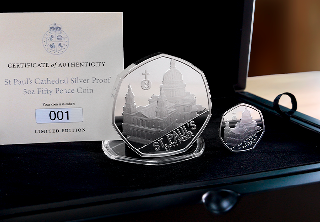 RARE DOUBLE DIAMETER Specification: The St Paul's Cathedral Silver 5oz 50p Coin
