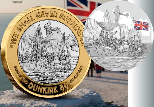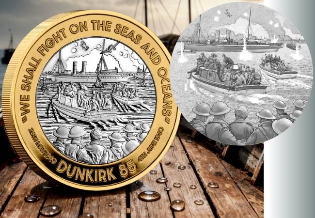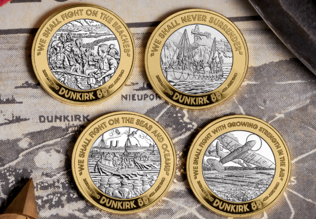 Now, that spirit is immortalised in the prestigious Dunkirk Sterling Silver Artist Edition - a tribute in four coins to one of Britain’s greatest hours.