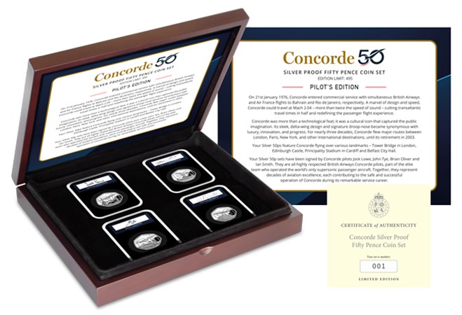 FULLY ALLOCATED: The Concorde Silver Proof 50p Coin Set - Pilot's Edition