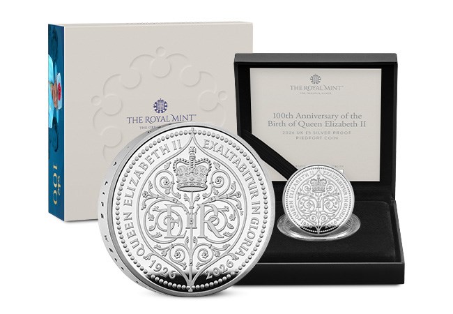For 2026, The Royal Mint marks 100 years since the birth of Queen Elizabeth II with this prestigious Silver Piedfort £5. Struck in Sterling Silver to the highest Proof standard, it has a strictly limited edition limit of just 1,500 coins worldwide.