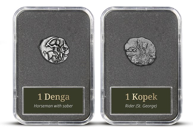 Step into the history of Imperial Russia with this exclusive two-coin collection featuring genuine silver wire money from two of its most iconic rulers.