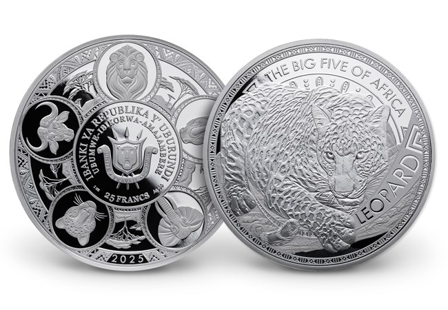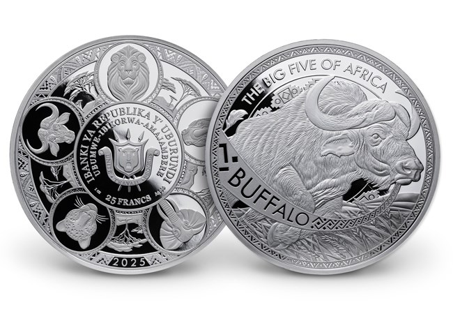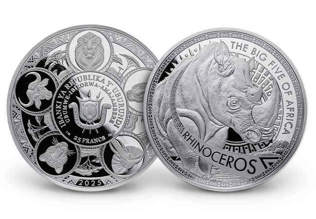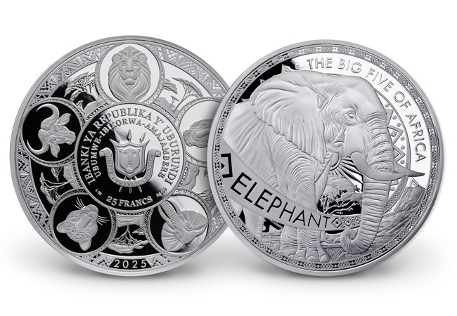 2025 marks a celebration of Africa’s most legendary creatures—the Big Five—brought to life in an exclusive silver coin collection.