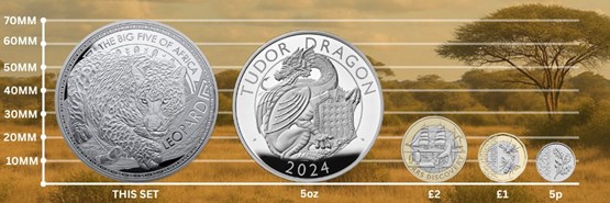Each coin boasts an exceptional 70mm diameter which is almost double the size of a £5 coin, allowing for intricate designs on both the obverse and reverse that highlight the raw power and elegance of Africa’s greatest wildlife. Issued by Burundi, this collection holds both numismatic and cultural significance, honouring the heritage and conservation efforts of the continent.